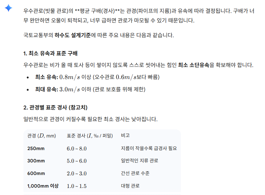 우수관로의 평균구배