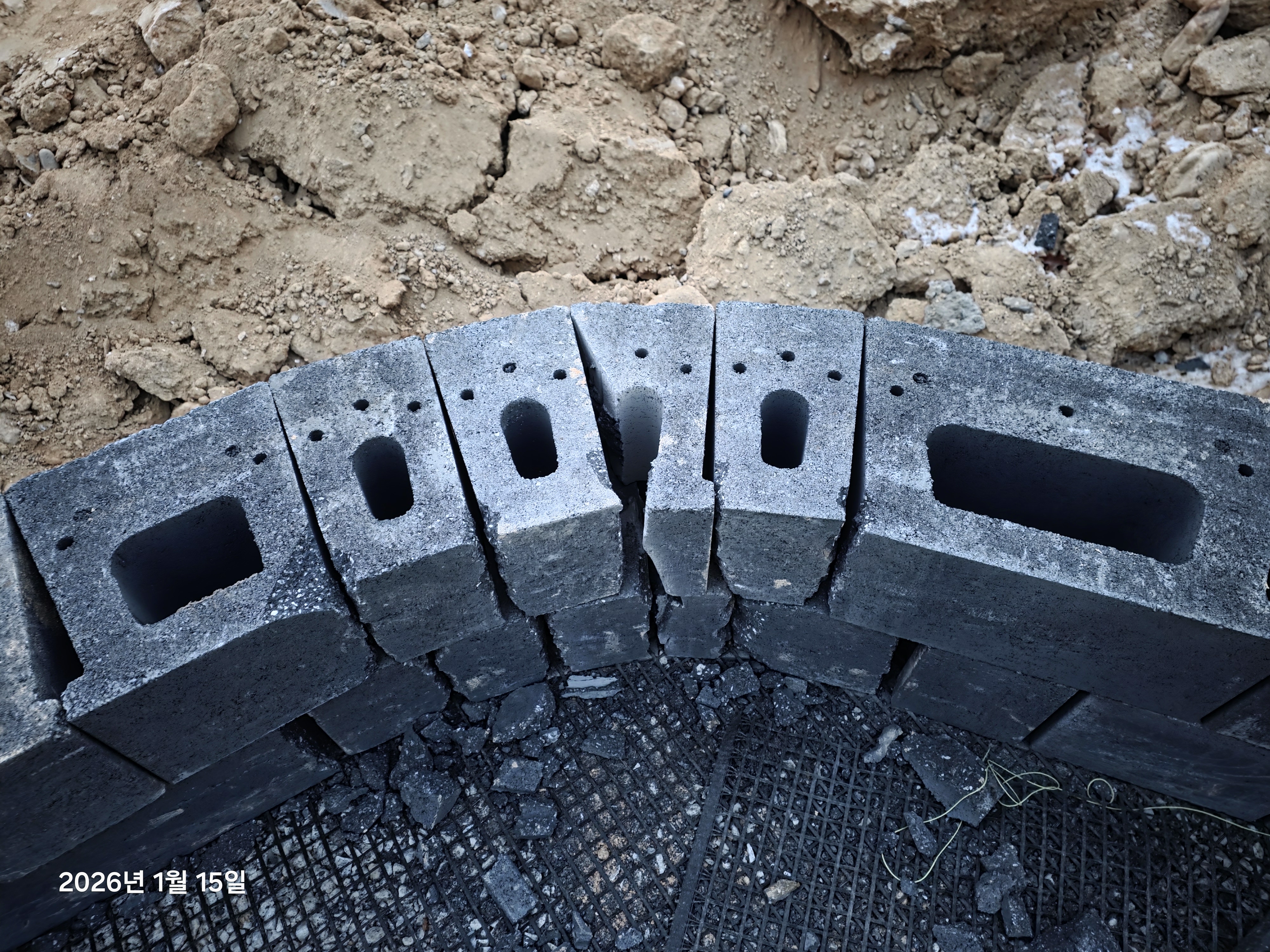 - 보강토 뒷면의 날개을 잘라서 곡선부의 라운드를 만들어 냈다. 이때는 본체를 건들리지 않고, 날개만 자르기 때문에 문제가 되진 않는다.